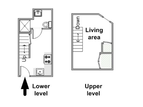 Le logement individuel entièrement équipé (plus de 25m²) : un logement avec une chambre séparée, à l’étage, de la pièce principale.